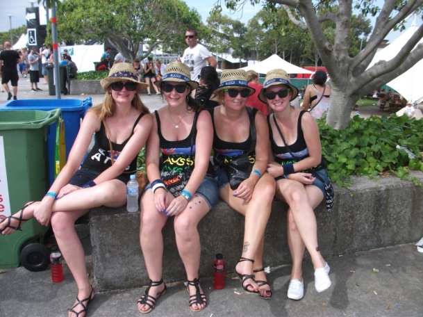 Festival-goers dressed in matching ‘heart Aussie’ tees with temporary southern cross tattoos, an older man with permanent Southern cross tattoo – taken with permission.